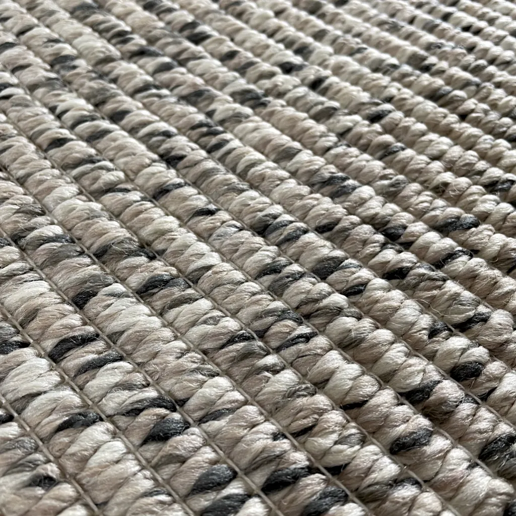 Hand-dyed, hand-spun and hand-woven in the KwaZulu-Natal Midlands, Riverstone Grey Outdoor Rug – Charcoal Fleck delivers the refined look of craft with the resilience of performance fibre. Up-cycled polypropylene filaments are hand-spun into a thick thread, then woven into a tactile flecked surface that reads natural—not plastic. The versatile grey