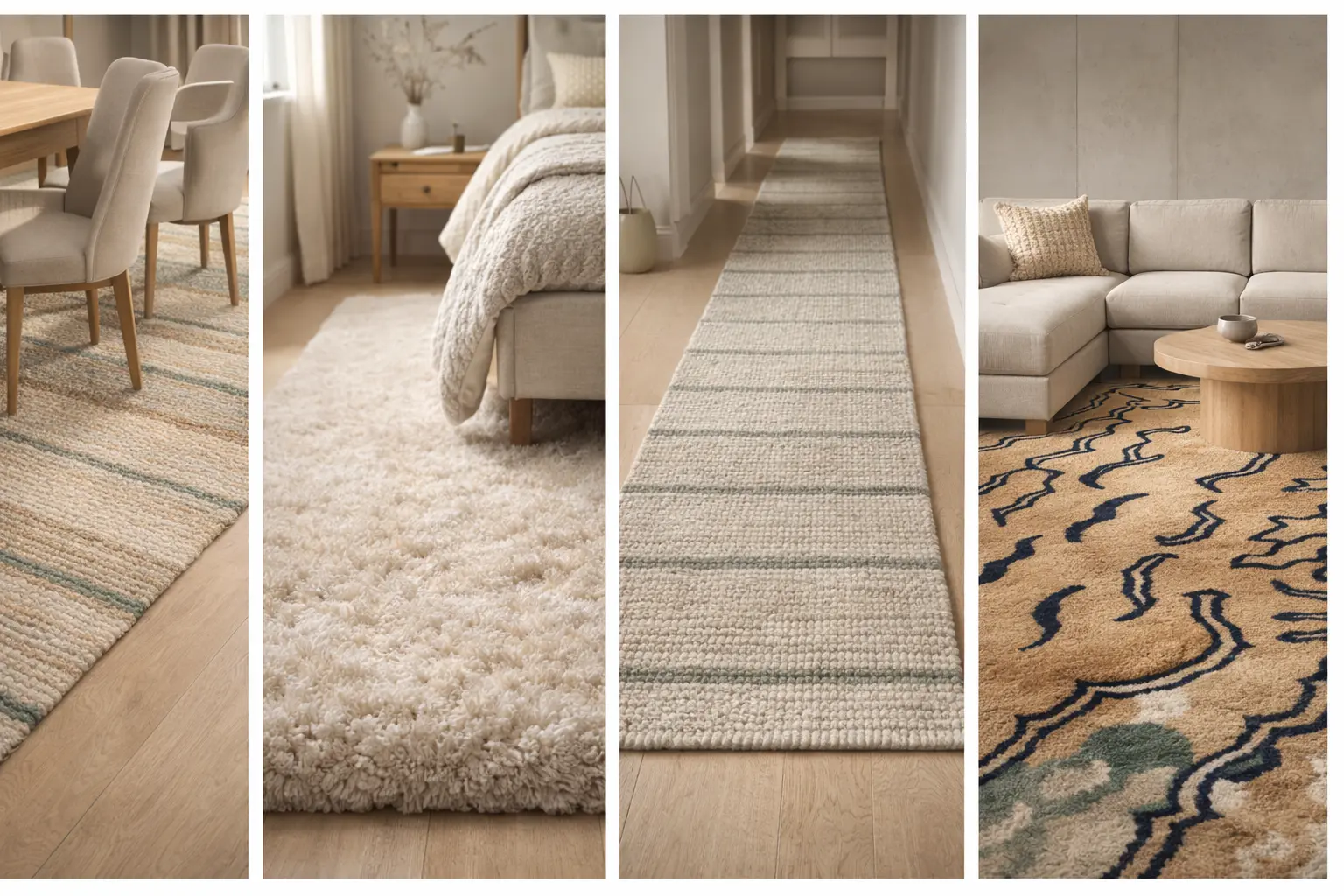 - Best choices: flatweave handwoven; low-pile machine-made; durable, tight weaves