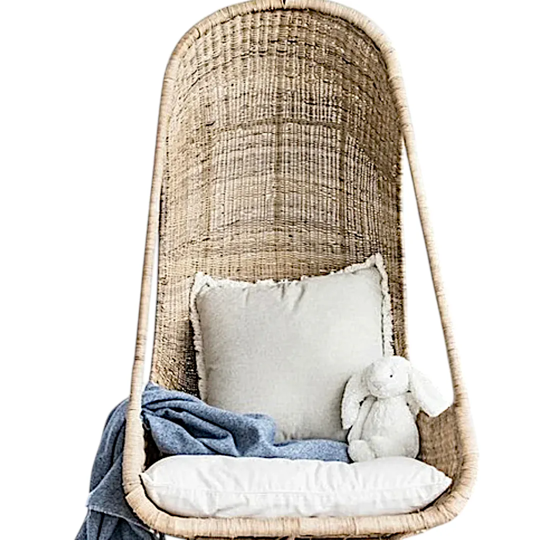 Whether you’re sipping coffee outside or curling up with a book indoors, the Hanging Wicker egg chair brings a soft, sculptural presence to wherever you put it — with comfort woven right in.