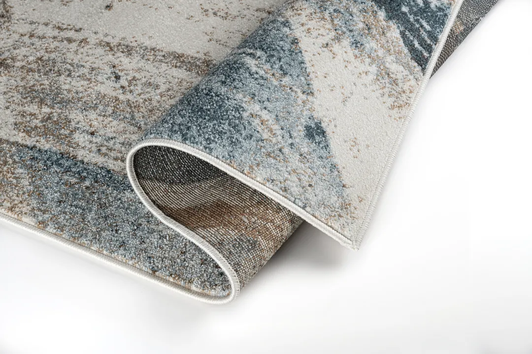 The Metro Sky Rug features a dynamic design reminiscent of bold paint strokes across a neutral canvas. Its fluid composition invites visual interest while maintaining harmony through its soft, modern palette. The contrast between cool slate and warm bronze tones adds depth, allowing it to complement minimalist, coastal, or urban-inspired interiors.