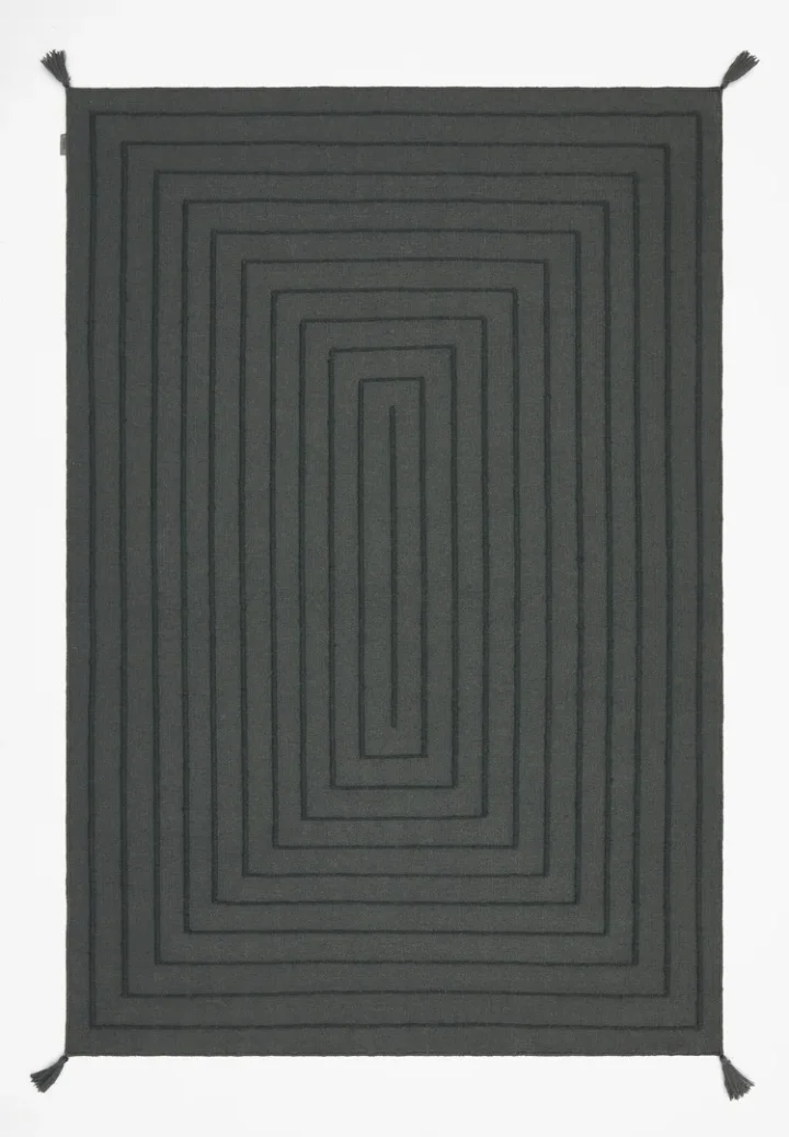 Featuring concentric rectangular motifs in deep dark grey, the design introduces rhythm and movement while maintaining a refined, architectural aesthetic. The neutral palette grounds your space without overpowering it, allowing the runner to integrate seamlessly into modern, minimalist, monochrome, or layered interiors.