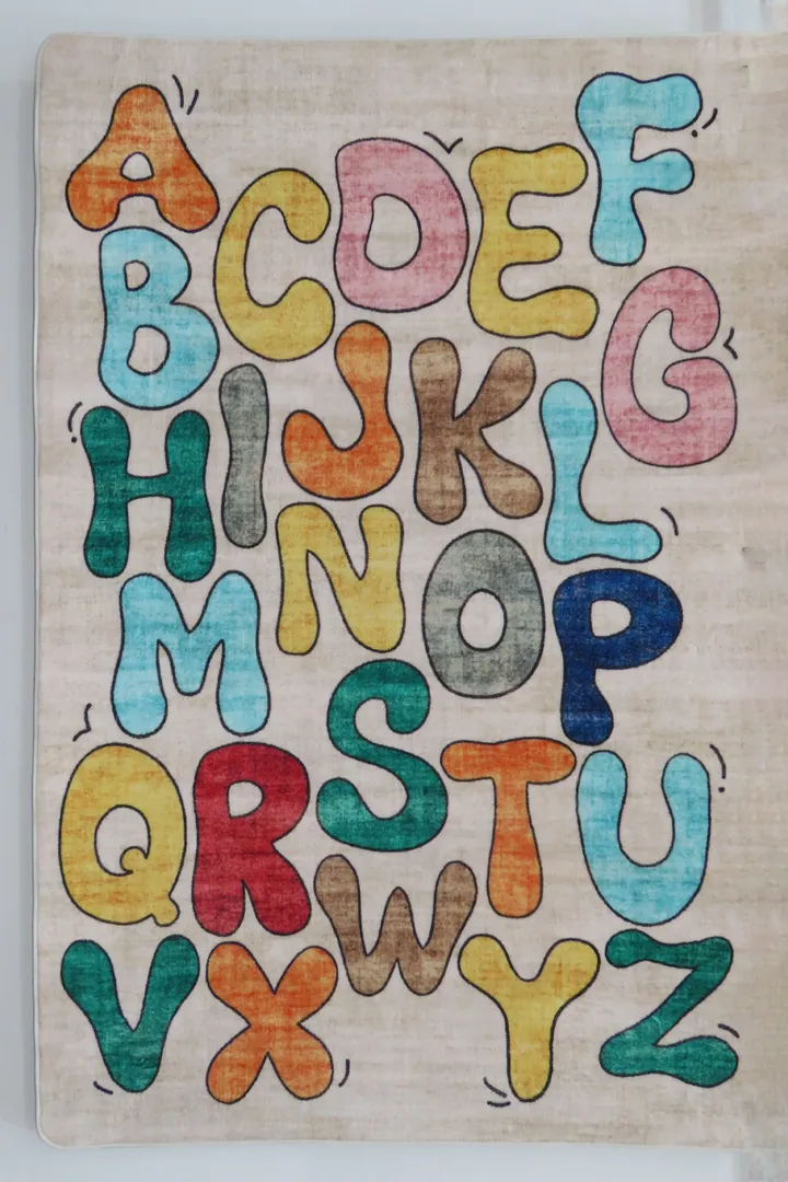The ABC Kids Rug transforms any floor into a learning adventure. Each letter of the alphabet is boldly printed in bright, friendly colours that stimulate curiosity and help children recognise letters while playing. The engaging design encourages early literacy and adds a joyful splash of colour that complements any interior style — from whimsical to modern.