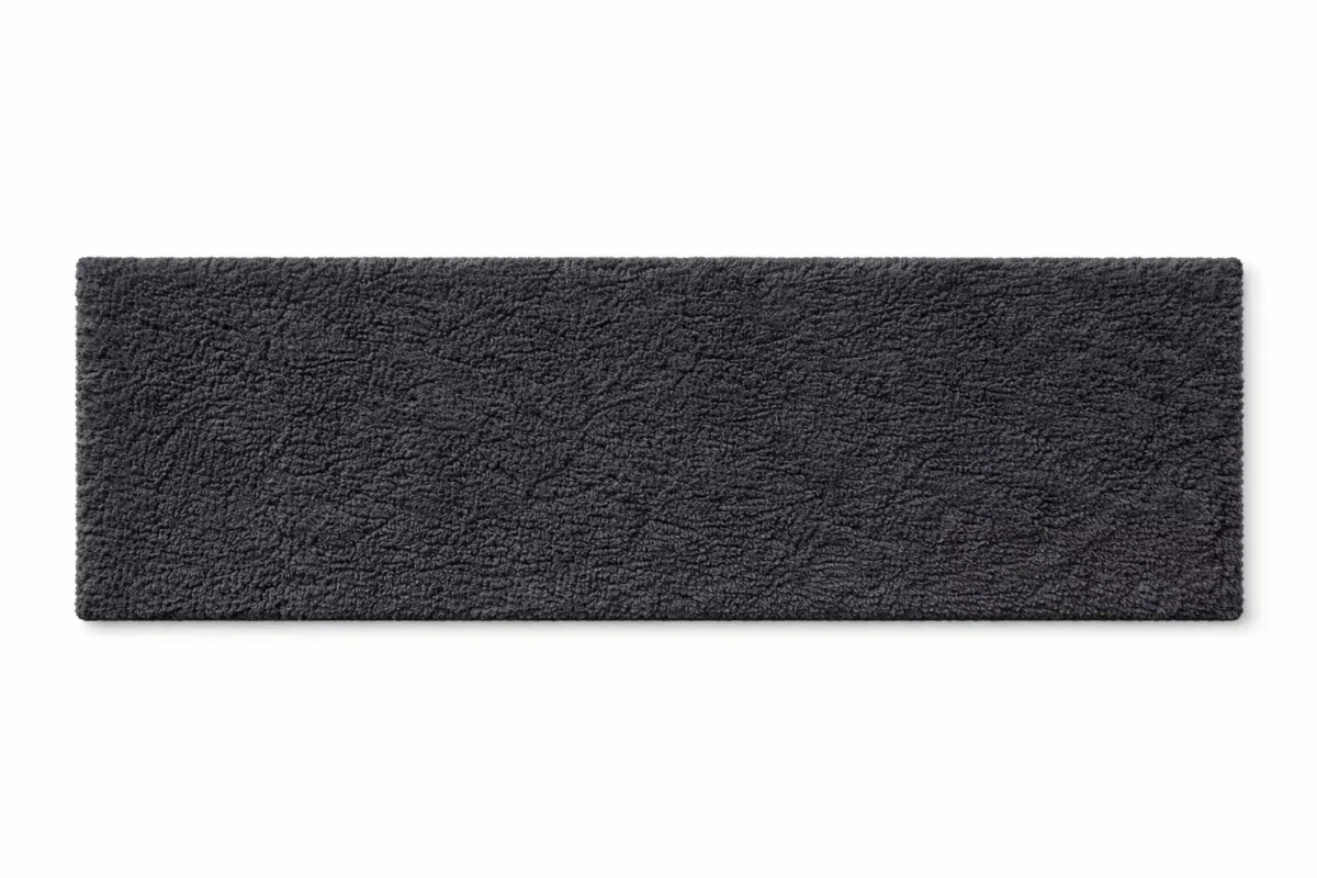 Its rich black tone adds depth and definition to the space, while the dense hand-tufted texture creates a soft, comfortable feel underfoot. Refined yet practical, this longer-format bathroom mat is ideal for interiors that favour clean lines, tactile finishes, and timeless simplicity.