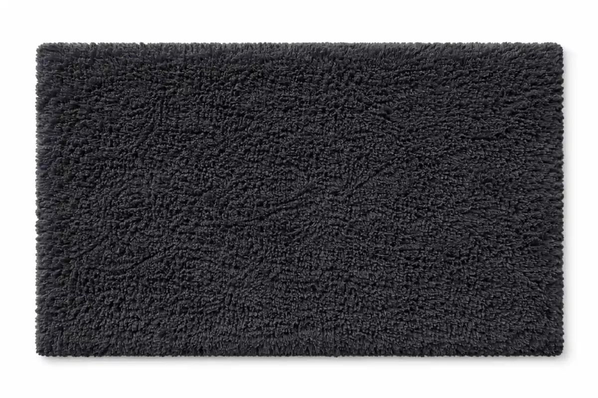 Its darker tone also enhances the texture of the tufted surface, allowing the plush pile to catch light subtly and give the mat a rich, dimensional finish.